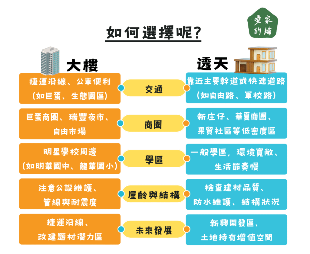 但當你真正準備買房時,常會面臨一個關鍵抉擇:「該買中古大樓,還是透天厝?」
